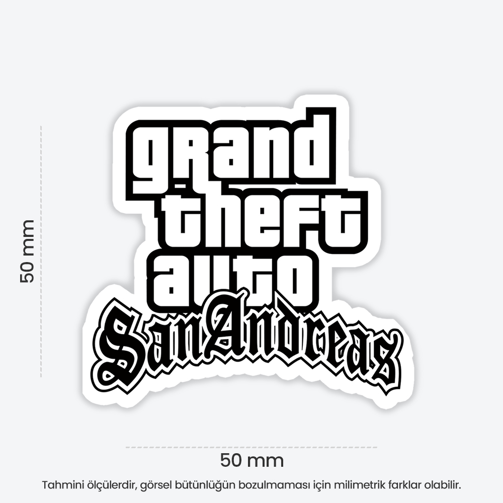 Grand Theft Auto San Andreas Logo Sticker temalı bu eğlenceli sticker, defter, laptop, tablet ve telefon yüzeylerine kolayca yapışır. Suya ve güneşe dayanıklı, çıkartıldığında iz bırakmaz. Ensticker kalitesiyle, dekoratif ve kaliteli sticker arayanlar için ideal seçim.