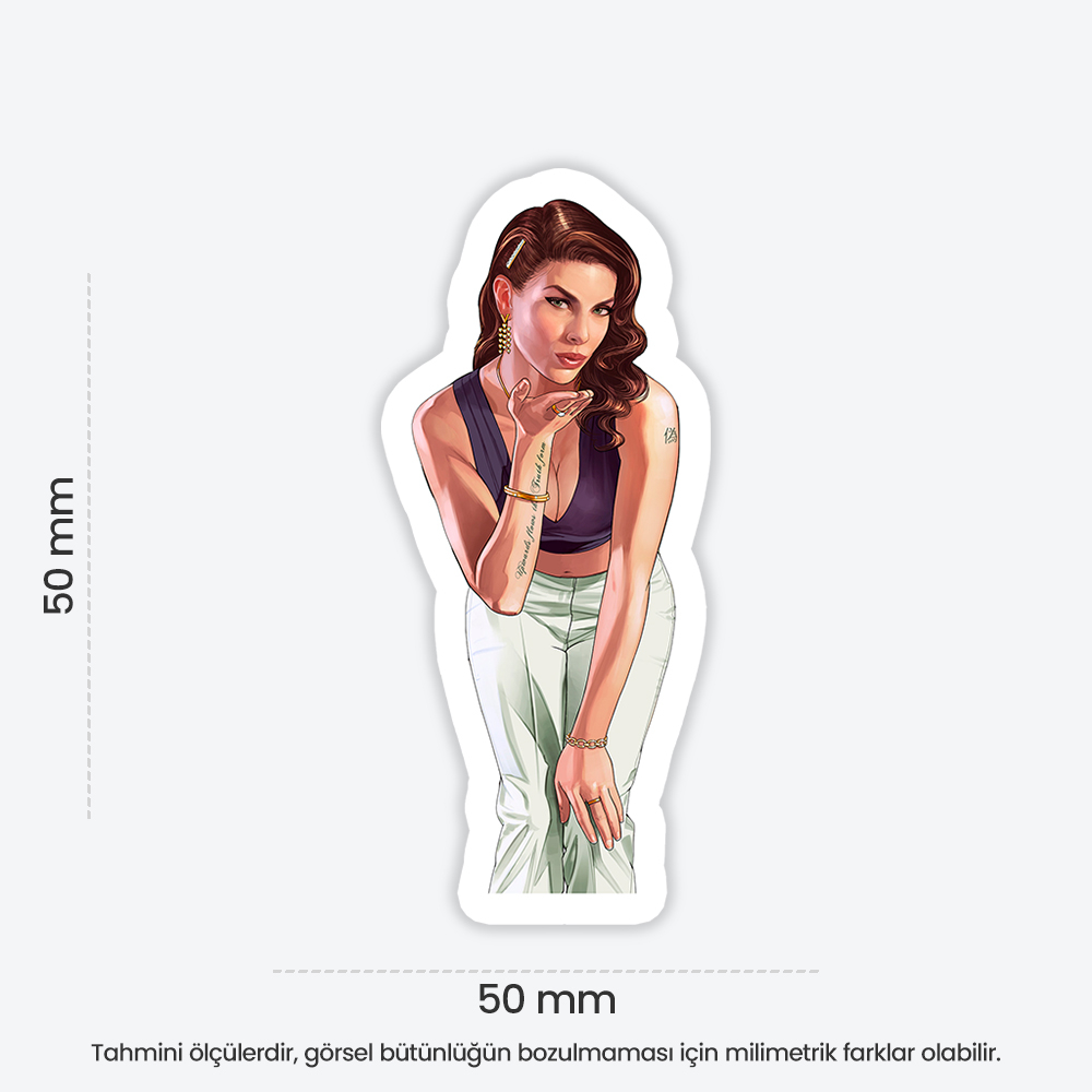 Grand Theft Auto V Brunette Girl Sticker temalı bu eğlenceli sticker, defter, laptop, tablet ve telefon yüzeylerine kolayca yapışır. Suya ve güneşe dayanıklı, çıkartıldığında iz bırakmaz. Ensticker kalitesiyle, dekoratif ve kaliteli sticker arayanlar için ideal seçim.