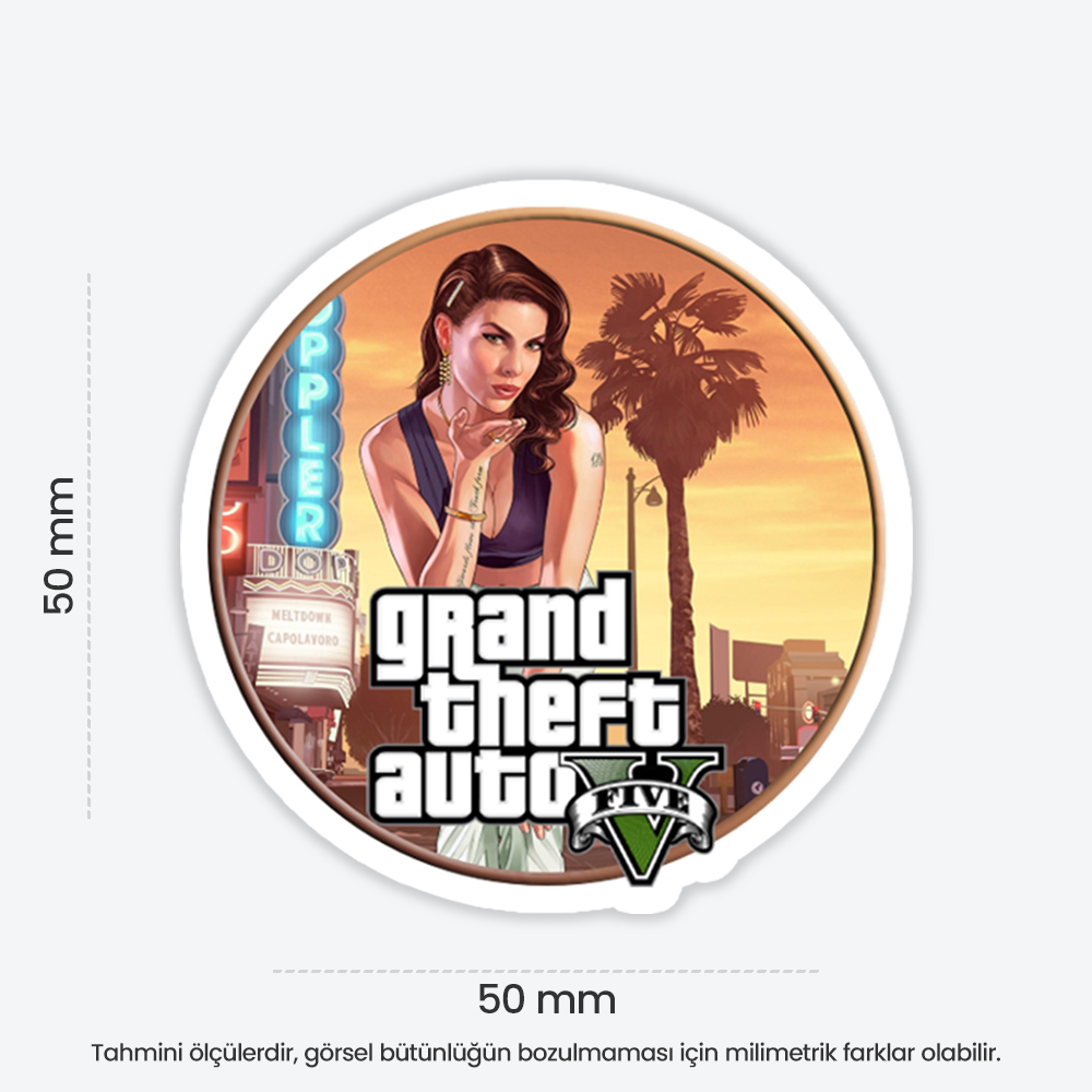 Grand Theft Auto V Tasarım Sticker #7 temalı bu eğlenceli sticker, defter, laptop, tablet ve telefon yüzeylerine kolayca yapışır. Suya ve güneşe dayanıklı, çıkartıldığında iz bırakmaz. Ensticker kalitesiyle, dekoratif ve kaliteli sticker arayanlar için ideal seçim.
