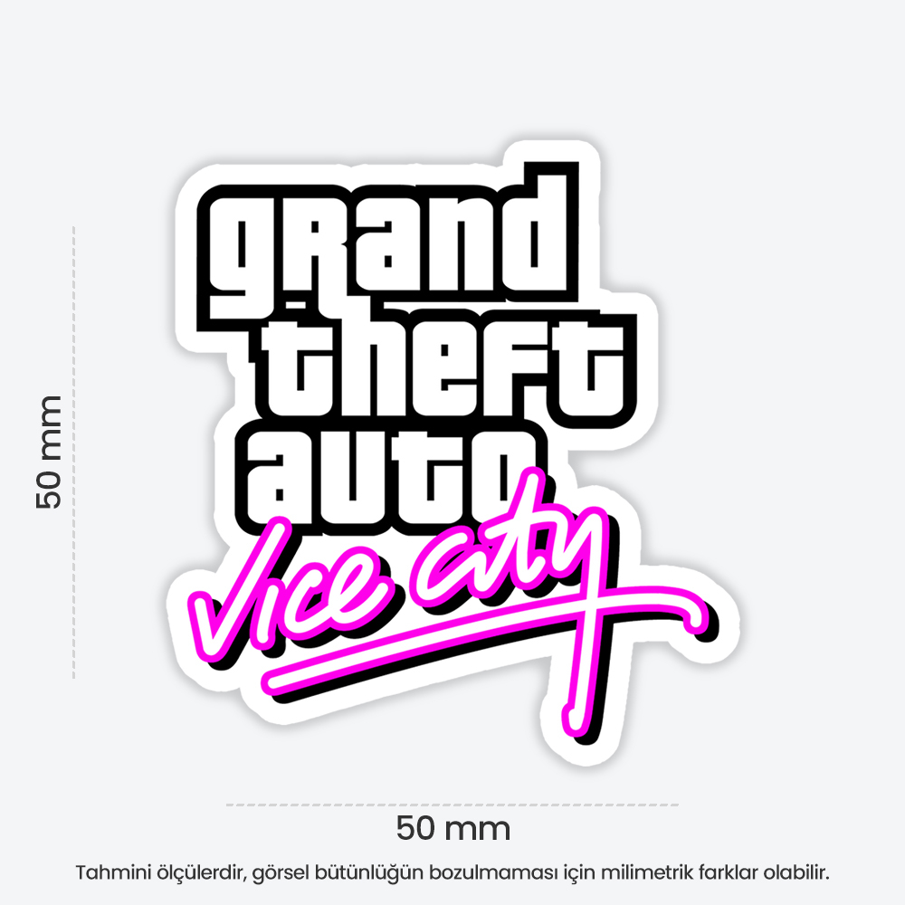 Grand Theft Auto Vice City Logo Sticker temalı bu eğlenceli sticker, defter, laptop, tablet ve telefon yüzeylerine kolayca yapışır. Suya ve güneşe dayanıklı, çıkartıldığında iz bırakmaz. Ensticker kalitesiyle, dekoratif ve kaliteli sticker arayanlar için ideal seçim.