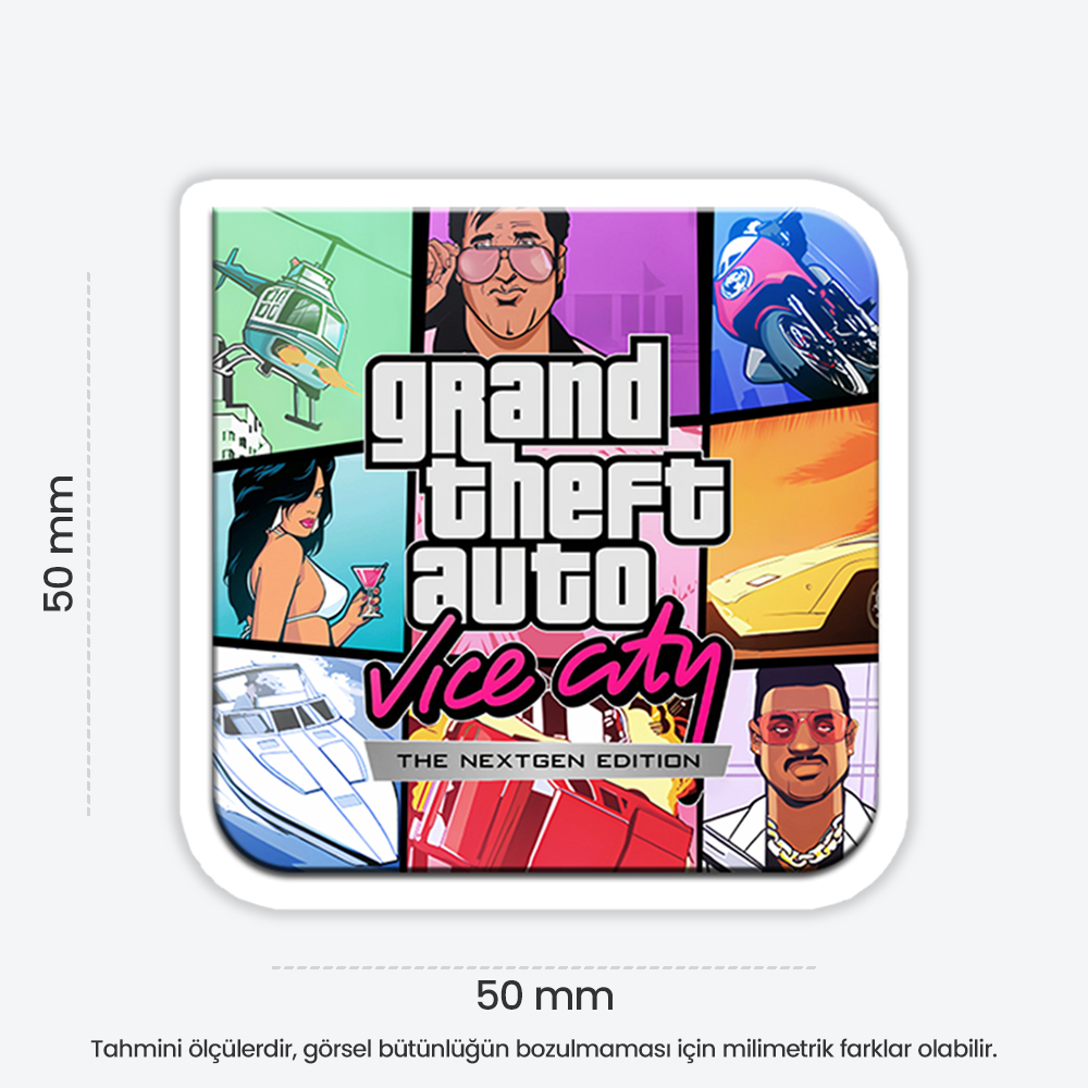 Grand Theft Auto Vice City Tasarım Sticker temalı bu eğlenceli sticker, defter, laptop, tablet ve telefon yüzeylerine kolayca yapışır. Suya ve güneşe dayanıklı, çıkartıldığında iz bırakmaz. Ensticker kalitesiyle, dekoratif ve kaliteli sticker arayanlar için ideal seçim.