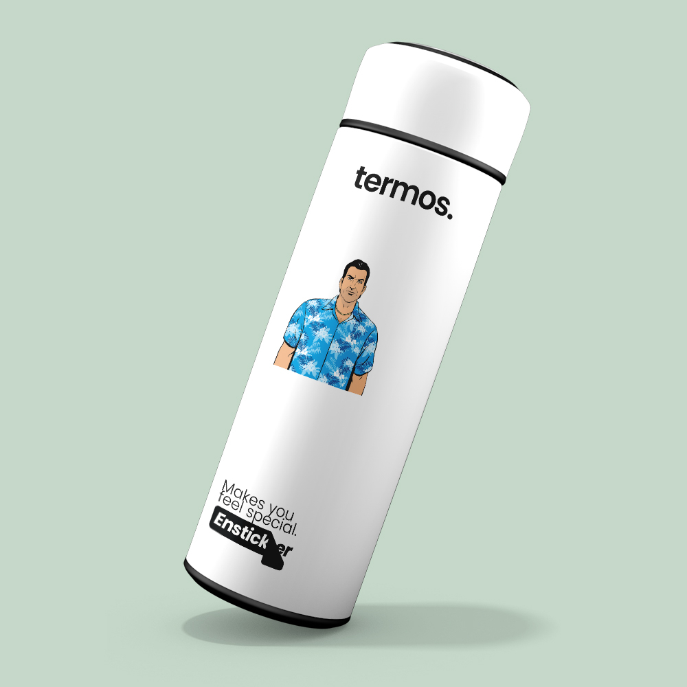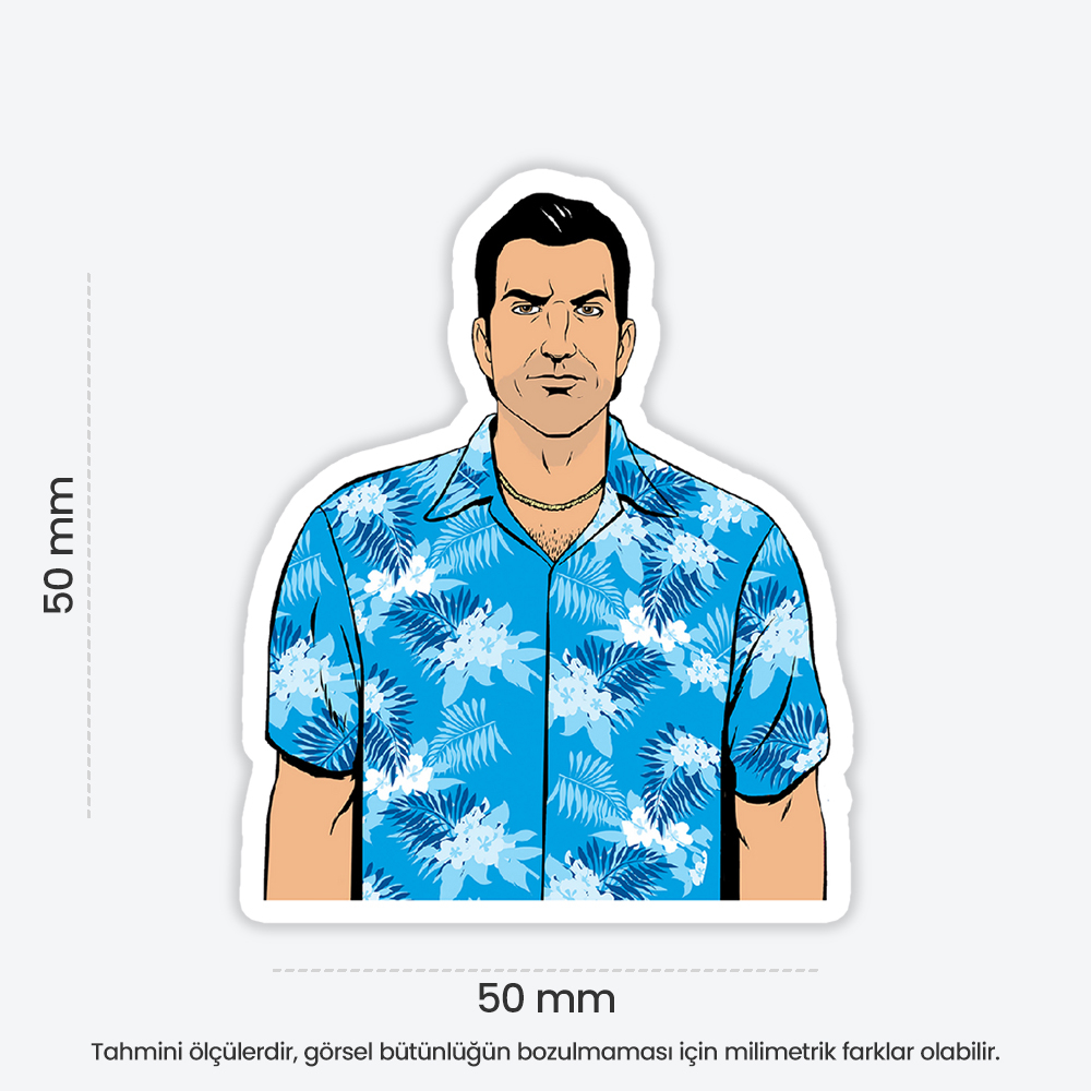 Tommy Vercetti temalı bu eğlenceli sticker, defter, laptop, tablet ve telefon yüzeylerine kolayca yapışır. Suya ve güneşe dayanıklı, çıkartıldığında iz bırakmaz. Ensticker kalitesiyle, dekoratif ve kaliteli sticker arayanlar için ideal seçim.